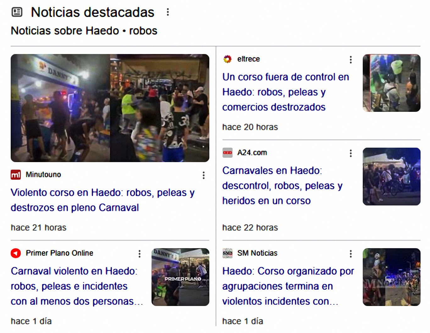 El domingo pasado nos despertamos leyendo o viendo por TV titulares sobre los desmanes y robos que se habían producido la noche anterior durante el corso.